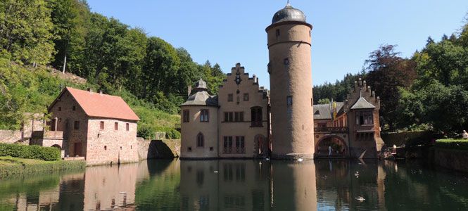 Runter geht es mit dem Adrenalin am idyllisch gelegenen Renaissance-Wasserschloß in Mespelbrunn. 100 000 Besucher kommen jährlich zu diesem Kleinod im Elsava-Tal. Es ist seit dem 15. Jh. Im Besitz der Echter von Mespelbrunn. Hier wurde der Film "Das Wirtshaus im Spessart" mit Lieselotte Pulver gedreht und viele Jahre haben Sie es abgeleckt: auf der 70-Pfennig-Briefmarke.